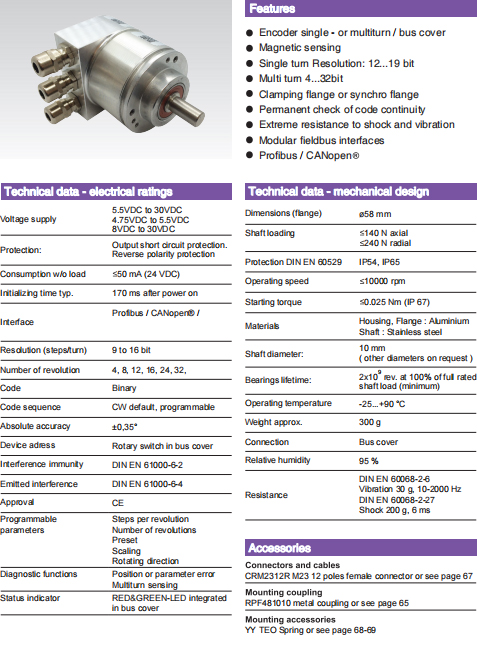 ○ | 接口:現場總線 / CANopen®/ | ○ | 分辨率(脈沖數/圈):9 至 16 位 | |||