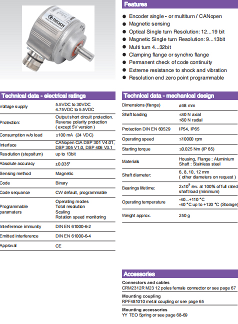 接口: CANopen CiA DSP 301 V4.01 DSP 305 V1.0, DSP 406 V3.1 |