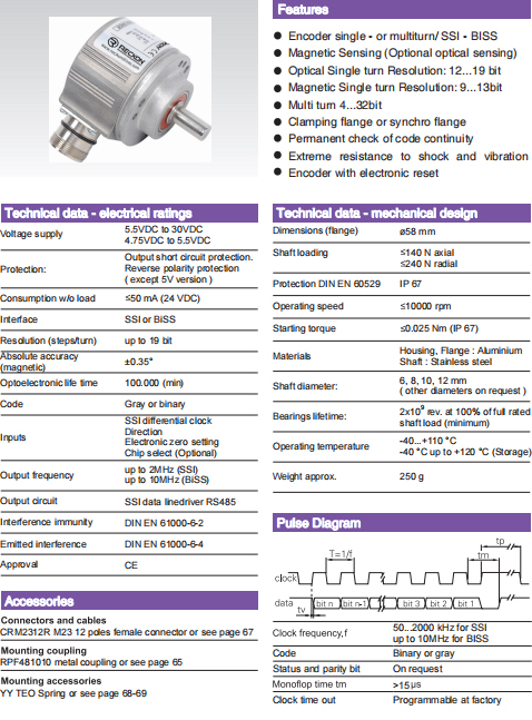 ○ | 空載電流:≤ 50mA(24VDC) | ○ | 接口:SSI或 BiSS | |||