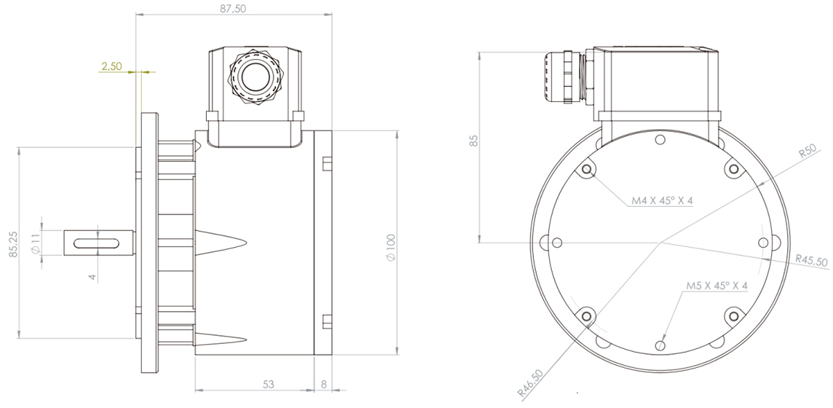 ○ | 尺寸(法蘭):B10法蘭/115mm | ○ | 軸類型:φ11mm(實心軸) | |||